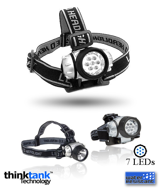 $1 + Free Shipping - ThinkTank Technology 7 LED Head Lamp With Adjustable Head Strap!